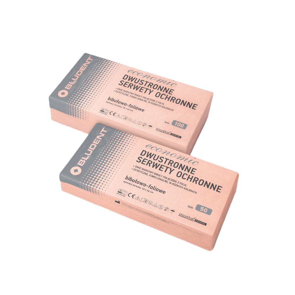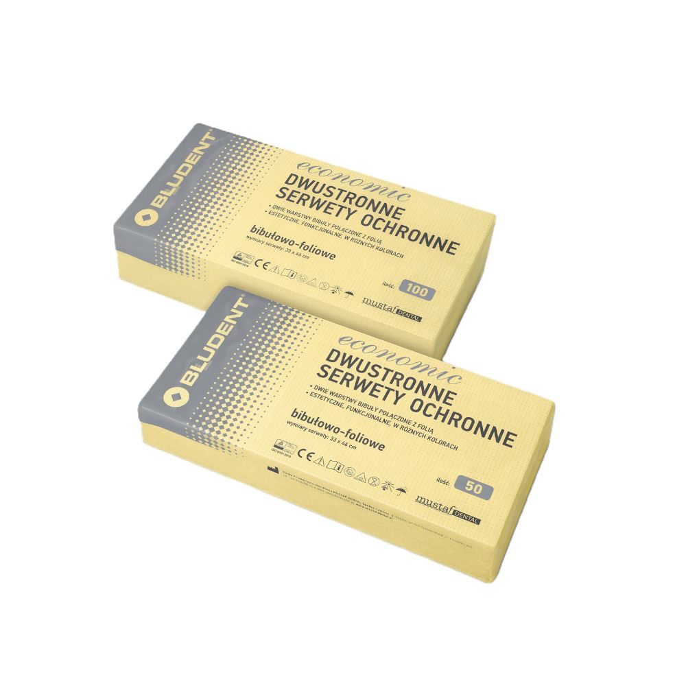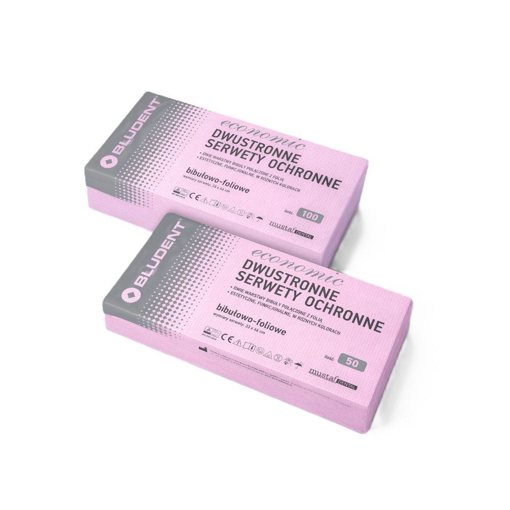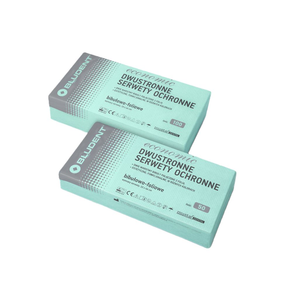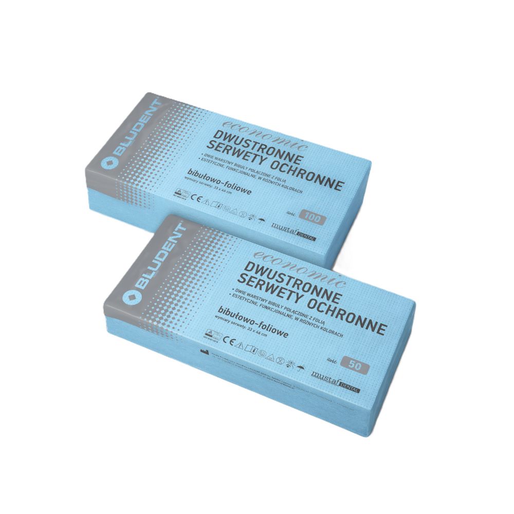 Dwie warstwy chłonnej bibuły przedzielone warstwą folii PE. Odporne na rozerwanie, miłe w dotyku, ekonomiczne w użyciu.