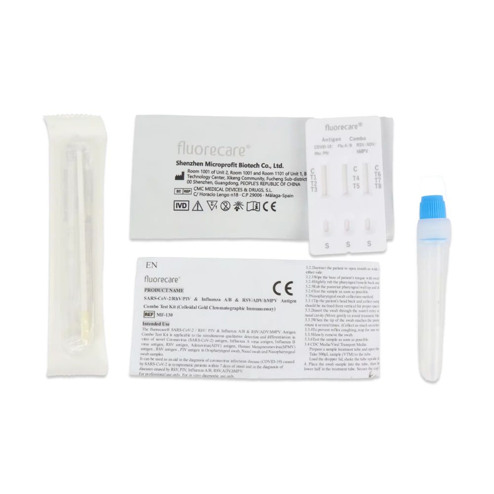 Fluorecare 8w1 to szybki test combo do diagnostyki in vitro, o wysokiej czułości, swoistości i dokładności wyników. Rezultaty wykonanego testu pojawią się już po 12 minutach od jego wykonania. Pobór materiału do badania pochodzi z wymazu z gardła, nosa lub nosogardzieli w warunkach in vitro. Test odpowiada za wykrycie w organizmie antygenów wirusa SARS-CoV-2, wirusa grypy typu A, grypy typu B, wirusa RSV, adenowirusa (ADV), ludzkiego metapneumowirusa (hMPV), wirusa paragrypy (PIV) oraz rhinowirusa (RhV) metodą złota koloidalnego. Jest praktycznym rozwiązaniem zapewniającym szybkie i dokładne wyniki. Sprawdzi się jako pomoc w diagnostyce zakażeń u osób, które zaobserwowały charakterystyczne dla tych patogenów objawy. Nadaje się również do testowania osób bezobjawowych szczególnie w sytuacjach uzasadnionego podejrzenia zakażenia.