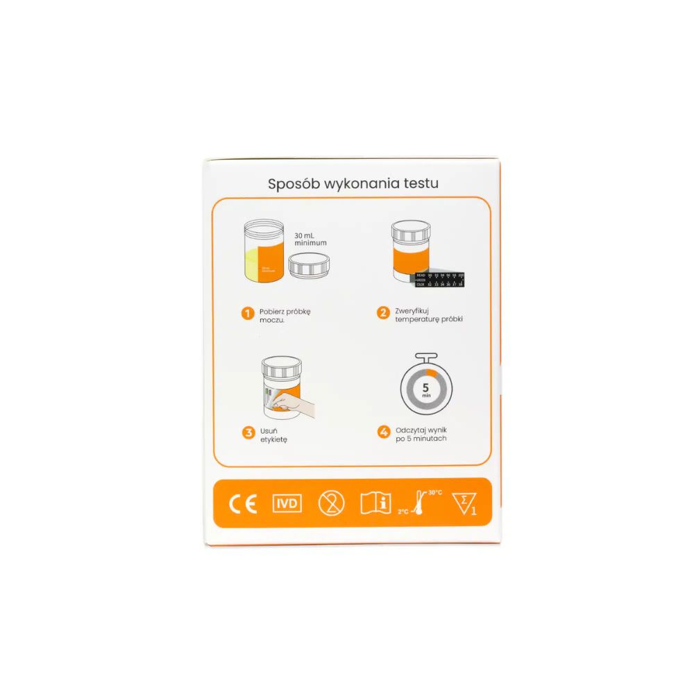 Przemyślana konstrukcja testu sprawia, że możliwe jest sprawdzenie obecności, aż 22 substancji psychoaktywnych w organizmie przy wykorzystaniu zaledwie jednej próbki moczu! Pojemnik testowy pozwala na zminimalizowanie ryzyka kontaktu z materiałem biologicznym zapewniając komfort oraz higieniczne warunki wykonania testu. Wśród substancji które są wykrywane przez test można znaleźć zarówno te najczęściej występujące, jak i te, które są rzadziej spotykane. Jest to więc korzystne rozwiązanie w przypadku, gdy potrzebna jest szeroka diagnostyka na wiele substancji. Sam wynik testu pojawia się już po 5 minutach. Dzięki wysokiej swoistości oraz czułości jest on wiarygodny i precyzyjny.