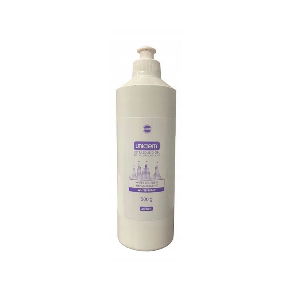 Unidem żel do USG, przezroczysty, przeznaczony do USG, KTG (kardiotokografii) oraz niektórych zabiegów fizykoterapeutycznych z użyciem ultradźwięków. Rozpuszczalny w wodzie, o bardzo dobrej przyczepności.